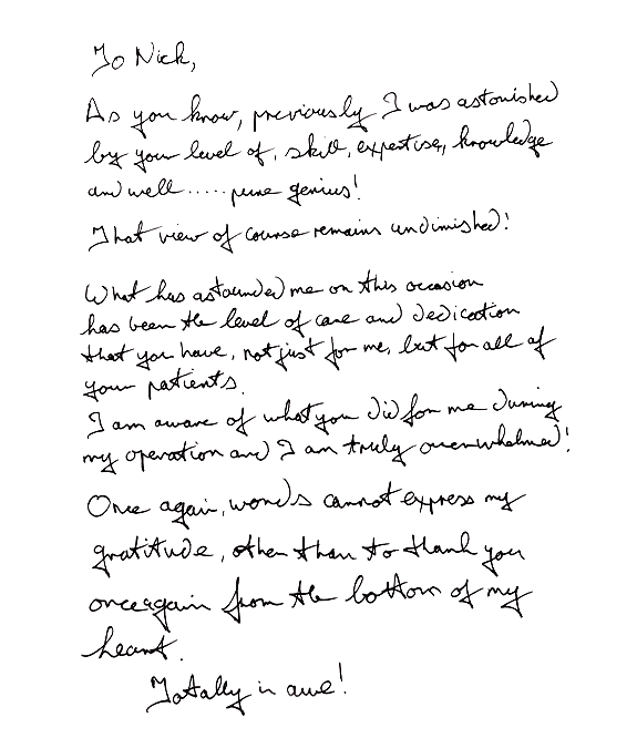 "Dr Nicholas. Thank you for saving my life."